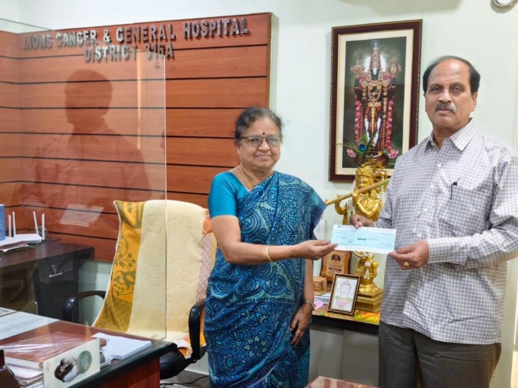 విశాఖఎడ్యుకేషన్, జనవరి 7ఫ్లాష్ మెయిల్ న్యూస్ పబ్లికేషన్స్ : ఆంధ్ర విశ్వవిద్యాలయం పూర్వ ఆచార్యులు, ఆచార్య డి. భారతి జనవరి 7 న విశాఖపట్నంలోని లయన్స్ క్యాన్సర్ అండ్ జనరల్ హాస్పిటల్ సందర్శించి, హాస్పిటల్ అందిస్తున్న వైద్య సేవలను కొనియాడుతూ Rs 2,75,000/- ల విరాళాన్ని ఇచ్చారు. ఈ మొత్తాన్ని ఆసుపత్రిలోని కార్డియాలజీ విభాగంతో పాటు మరియు ఇతర వైద్య విభాగాలను కూడా బలోపేతం చేయడానికి ఉపయోగించనున్నారు. మేనేజింగ్ ట్రస్టీ లయన్ ఆచార్య వెలగపూడి ఉమా మహేశ్వరరావు ఈ చెక్కును అందుకున్నారు మరియు ఆచార్య భారతి గారి ఉదార విరాళానికి కృతజ్ఞతలు తెలిపారు. వీరు ఇప్పుడే కాకుండా, పూర్వం కూడా అనేక సందర్భాల్లో హాస్పిటల్ అభివృద్ధికి సహాయ సహకారాలు అందించారు.