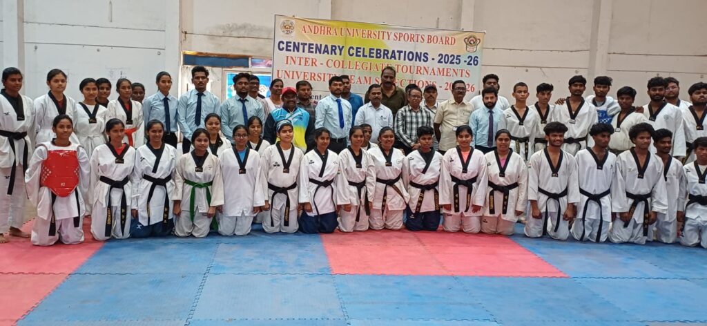విశాఖపట్నం, ఫిబ్రవరి 18 ఫ్లాష్ మెయిల్ న్యూస్ పబ్లికేషన్స్: ఆంధ్రవిశ్వవిద్యాలయం టైక్వాండో పురుషులు, మహిళల జట్టు ఎంపికలు గురువారం ఏయూ న్యూ జిమ్నాజియంలో జరిగాయి. ముఖ్యఅతిథిగా డీన్ ఇంఫ్రా ప్లానింగ్ ఆచార్య కె. శ్రీనివాసరావు పాల్గొని ప్రారంబించారు. ఈసందర్భంగా మాట్లాడుతూ ప్రతిభ గల క్రీడాకారులకు ఉపాధి అవకాశాలు ఎక్కువగా వస్తాయన్నారు. టైక్వాండో జట్టు లు యూనివర్శిటి పోటీల్లో ప్రతిభ సాదించి వర్సిటికి మంచి పేరు తేవాలన్నారు. ఏయూ డైరెక్టర్ ఆఫ్ ఫిజికల్ ఎడ్యుకేషన్ ఆచార్య ఎన్. విజయమోహన్ మాట్లాడుతూ టైక్వాండో పోటీల్లో పాల్గొంటున్న విద్యార్థులకు టి.ఎ డి.ఎ తోపాటు ట్రాక్ సూట్స్ వంటి క్రీడా పరికరాలు అందజేయడం జరుగుతుందన్నారు. ఈసందర్భంగా క్రీడాకారులను అభినందించారు. ఈ కార్యక్రమంలో ఏయూ చీఫ్ ఇంజనీర్ తిరుపతిరావు, అసోసియేట్ డీన్ ఇంఫ్రా ప్లానింగ్ ఆచార్య అధిసేషు, డ్రాప్ట్మన్ పైడిరాజు, సాంకేతిక కళాశాల పిడీ సురేష్, కోచ్ రమేష్ సెంట్ జోసెప్ కళాశాల పిడీ ప్రవీణ్, గాయత్రీ కళాశాల పిడీ మంగళ గౌరీ, నక్కపల్లి జీడీసీ పీడీ దుర్గారావు, తదితరులు పాల్గొన్నారు.