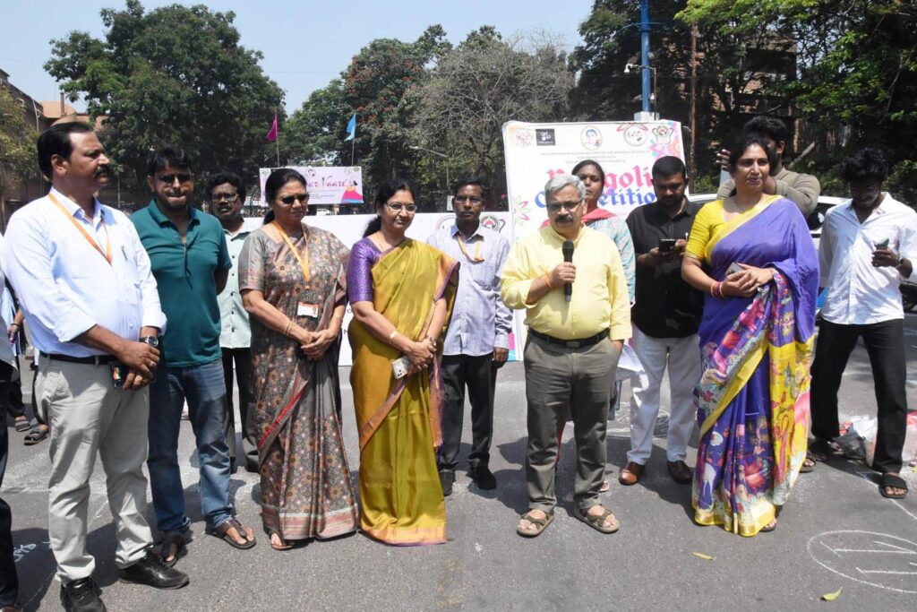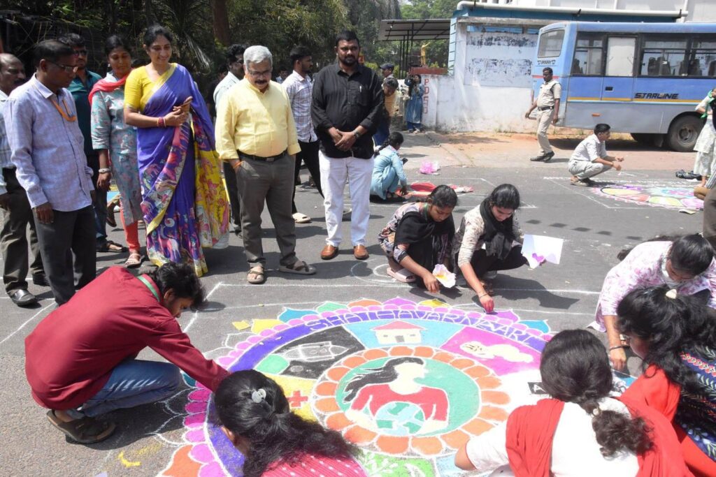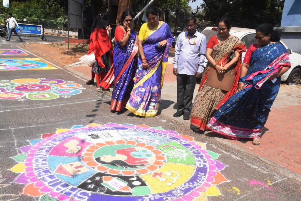 విశాఖ ఎడ్యుకేషన్, మార్చ్ 5 ఫ్లాష్ మెయిల్ న్యూస్ పబ్లికేషన్స్ : ఆంధ్రవిశ్వవిద్యాలయం శతాబ్ది ఉత్సవాలలో భాగంగా అంతర్జాతీయ మహిళా దినోత్సవ వేడుకలలో భాగంగా ఏయూ ఉద్యోగులు, విద్యార్థులకు రంగోళీ పోటీలను నిర్వహించారు. ఏయూ పరిపాలనా భవనం ఎదురుగా ఏర్పాటు చేసిన ఈ పోటీలలో ఏయూ విద్యార్థులు ఉత్సాహంగా పాల్గొని రంగవల్లులను తీర్చిదిద్దారు. ఉత్సవాలు, నిత్యం పుస్తకాలు, ప్రయోగశాలల్లో గడిపే విద్యార్థులు కాస్త విరామం తీసుకుని అందమైన రంగ వల్లులను తీర్చిదిద్దారు. శతాబ్ది శోభను తీసుకువచ్చే విధంగా ఈ కార్యక్రమం సాగింది. కార్యక్రమంలో మెత్తం 50 మంది వరకు పాల్గొని ఉత్సాహంగా ముగ్గుల పోటీలో పాల్గొన్నారు. ఏయూ ఉపకులపతి ఆచార్య జి.పి రాజశేఖర్ ఈ సందర్భంగా విద్యార్థులను, ఉద్యోగులకు అభినందించారు. శతాబ్ది మహిళా దినోత్సవం పురస్కరించుకునివినూత్న కార్యక్రమాలను నిర్వహిస్తున్నామన్నారు. మహిళా అభ్యున్నతి, వికాసాన్ని ప్రతిబింబిస్తూ రంగవల్లులు తీర్చిదిద్దడం పట్ల సంతోషం వ్యక్తం చేశారు. రంగవల్లులను తిలకించి వాటిని తీర్చిదిద్దిన వారిని అభినందించారు. ఏయూ ఉపకులపతి సతీమణి జి.పావని స్వయంగా విద్యార్థులు వేసిన ముగ్గులను పరిశీలించారు. ఎంతో సృజనాత్మకంగా ఆలోచన చేస్తూ, మహిళా సాధికారతను ప్రతిబింబిస్తూ వీటిని తీర్చిదిద్దడం పట్ల విద్యార్థులను అభినందించారు. కార్యక్రమాన్ని మహిళా అధ్యయన కేంద్రం సంచాలకులు ఆచార్య ఏ. పల్లవి సమన్వయం చేశారు. కార్యక్రమంలో లా కళాశాల ప్రిన్సిపాల్స్ ఆచార్య కె. సీతామాణిక్యం, ఆచార్య ఆర్. పద్మశ్రీ, ఆచార్య ఏం. శశి. డీన్లు కె.రమాసుధ, డి. లలిత భాస్కరి, ఆచార్య వి. వల్లీకుమారి, మేరీ సౌజన్య తదితరులు పాల్గొన్నారు.