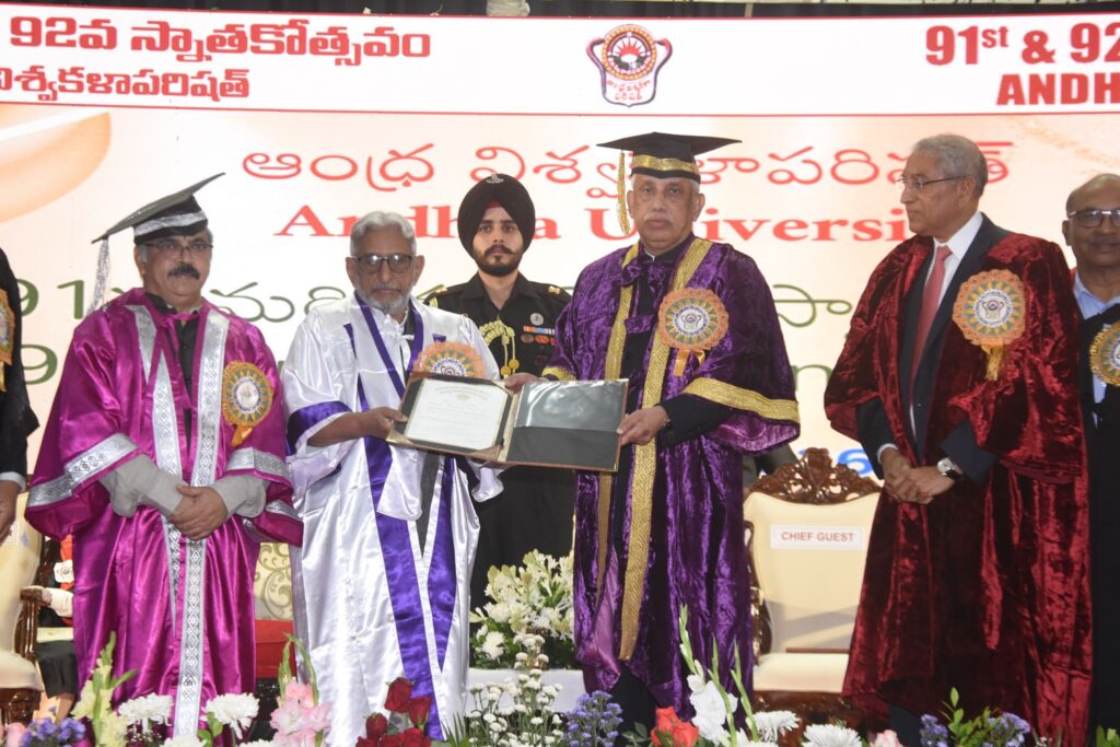 విశాఖ ఎడ్యుకేషన్, మార్చి 25 ఫ్లాష్ మెయిల్ న్యూస్ పబ్లికేషన్స్ : వందేళ్ల వైభవానికి నిరుపమాన ప్రగతికి ఆంధ్ర విశ్వవిద్యాలయం ప్రత్యేక నిదర్శనమని ఆంధ్రప్రదేశ్ రాష్ట్ర గవర్నర్ అబ్దుల్ నజీర్ కొనియాడారు. శతాబ్ది ఉత్సవాల సందర్భంగా కన్వెన్షన్ సెంటర్లో బుధవారం నిర్వహించిన 91వ, 92వ స్నాతకోత్సవాల్లో ముఖ్య అతిథిగా పాల్గొన్న ఆయన విశ్వవిద్యాలయ వందేళ్ల ప్రస్థానాన్ని ప్రశంసిస్తూ ప్రేరణాత్మక ప్రసంగం చేశారు. శతాబ్ద కాలంగా ఆంధ్ర విశ్వవిద్యాలయం విద్యా, పరిశోధన, ఆవిష్కరణ రంగాల్లో సాధించిన ప్రగతి దేశానికి గర్వకారణమని పేర్కొన్నారు. ఒక విద్యాసంస్థగా ప్రారంభమైన ఈ విశ్వవిద్యాలయం నేడు జాతీయ, అంతర్జాతీయ స్థాయిలో గుర్తింపు పొందిన జ్ఞానపీఠంగా అవతరించడం విశేషం అని ఉద్ఘాటించారు. గత వందేళ్లలో ఆంధ్ర విశ్వవిద్యాలయం వేలాది మంది విద్యార్థులను సమాజానికి అందించి, వారు వివిధ రంగాల్లో విశిష్ట సేవలు అందించడం ఈ సంస్థ గొప్పతనానికి నిదర్శనమన్నారు. విజ్ఞానం, విలువలు, సేవా దృక్పథం కలిగిన పౌరులను తీర్చిదిద్దడంలో విశ్వవిద్యాలయం కీలక పాత్ర పోషించిందన్నారు. విశ్వవిద్యాలయం స్థాపనలో ప్రముఖులైన సర్ సి.ఆర్. రెడ్డి, డాక్టర్ సర్వేపల్లి రాధాకృష్ణన్, డాక్టర్ వి.ఎస్. కృష్ణ వంటి మహనీయుల దూరదృష్టి, సేవలను ఈ సందర్భంగా గవర్నర్ స్మరించుకున్నారు. నోబెల్ బహుమతి గ్రహీత సి.వి. రామన్, గణాంక శాస్త్రవేత్త సి.ఆర్. రావు వంటి గొప్ప వ్యక్తులు ఈ విశ్వవిద్యాలయానికి చెందినవారిగా నిలవడం గర్వకారణమని అన్నారు. ప్రస్తుతం ఆంధ్ర విశ్వవిద్యాలయం న్యాక్ ఏ++ హోదాతో పాటు ఐఎస్వో గుర్తింపుతో విద్యా ప్రమాణాలను నిలబెట్టుకుంటూ, పరిశోధన, స్టార్టప్లు, పేటెంట్ నమోదు, క్రీడలు, సేవా కార్యక్రమాల్లో ముందంజలో ఉందని గవర్నర్ గుర్తు చేశారు.