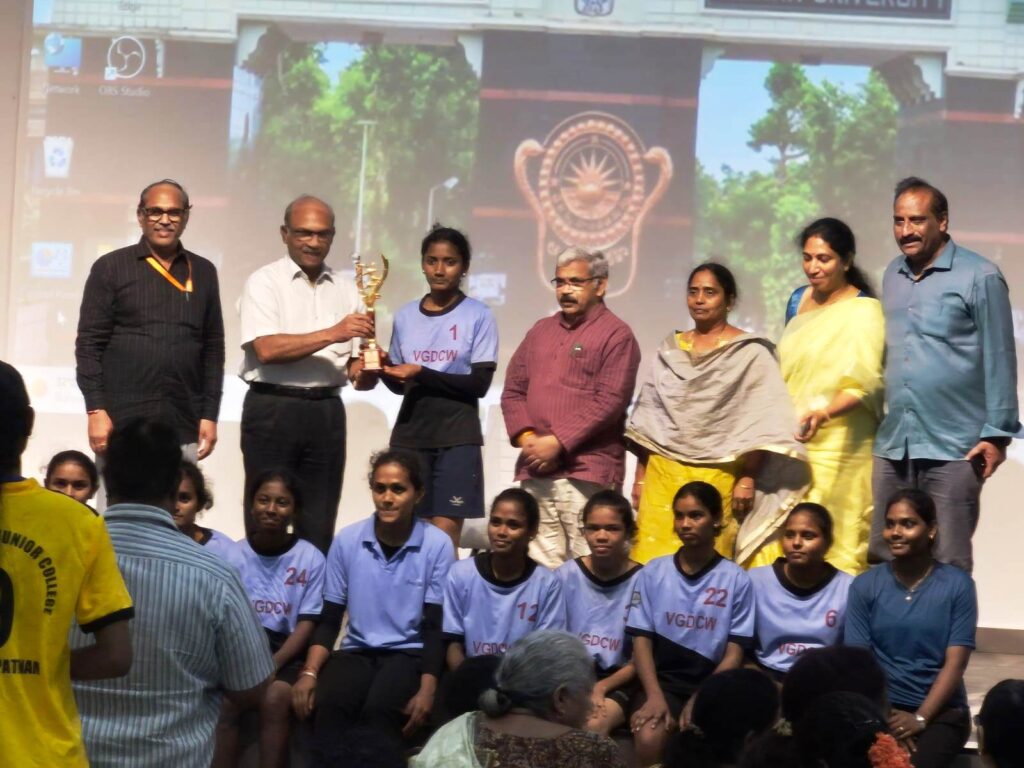 విశాఖపట్నం, మార్చ్ 26 ఫ్లాష్ మెయిల్ పబ్లికేషన్స్ : ఆంధ్రవిశ్వవిద్యాలయం ఇంటర్ కాలిజియట్ మహిళల ఖోఖో పోటీలు ఏయూ గోల్డెన్ జూబ్లీ క్రీడా మైధానంలో గురువారం సాయంత్రం ముగిసాయి. విజేతలకు ఏయూ కోదండరామయ్య క్రీడా భవనంలో ఎపిఎస్ సి హెచ్ ఈ చైర్మన్ ఆచార్య కె. మధుమూర్తి, ఏయూ వీసీ ఆచార్య జీ.పీ రాజశేఖర్ విజేతలకు బహుమతి ప్రధానం చేసారు. ఖోఖో మహిళల ఇంటర్ కాలిజియట్ పోటీల్లో ప్రధమ స్థానంలో విజయనగరం జిల్లా కొత్తవలస ప్రగతి వ్యాయామ విద్యా కళాశాల, ద్వితీయ స్థానంలో విశాఖపట్నం డాక్టర్ లంకపల్లి బుల్లయ్య కళాశాల, తృతీయ స్థానంలో విశాఖ మహిళా డిగ్రీ, పీజీ కళాశాల నిల్చాయి. ఈసందర్భంగా క్రీడాకారులను అధికార్లు అభినందించారు. ఈ కార్యక్రమంలో ఏయూ రిజిస్ట్రార్ ఆచార్య రాంబాబు, ఏయూ డైరెక్టర్ ఆఫ్ ఫిజికల్ ఎడ్యుకేషన్ ఆచార్య ఎన్. విజయమోహన్, వ్యాయామ విద్యా విభాగం హెడ్ ఆచార్య ఎ. పల్లవి, డాక్టర్ లంకవల్లి బుల్లయ్య కళాశాల పి డీ డాక్టర్ వై. శ్రీనివాసరావు, డాక్టర్ లక్ష్మణ్ రెడ్డి, తదితరులు పాల్గొన్నారు.
