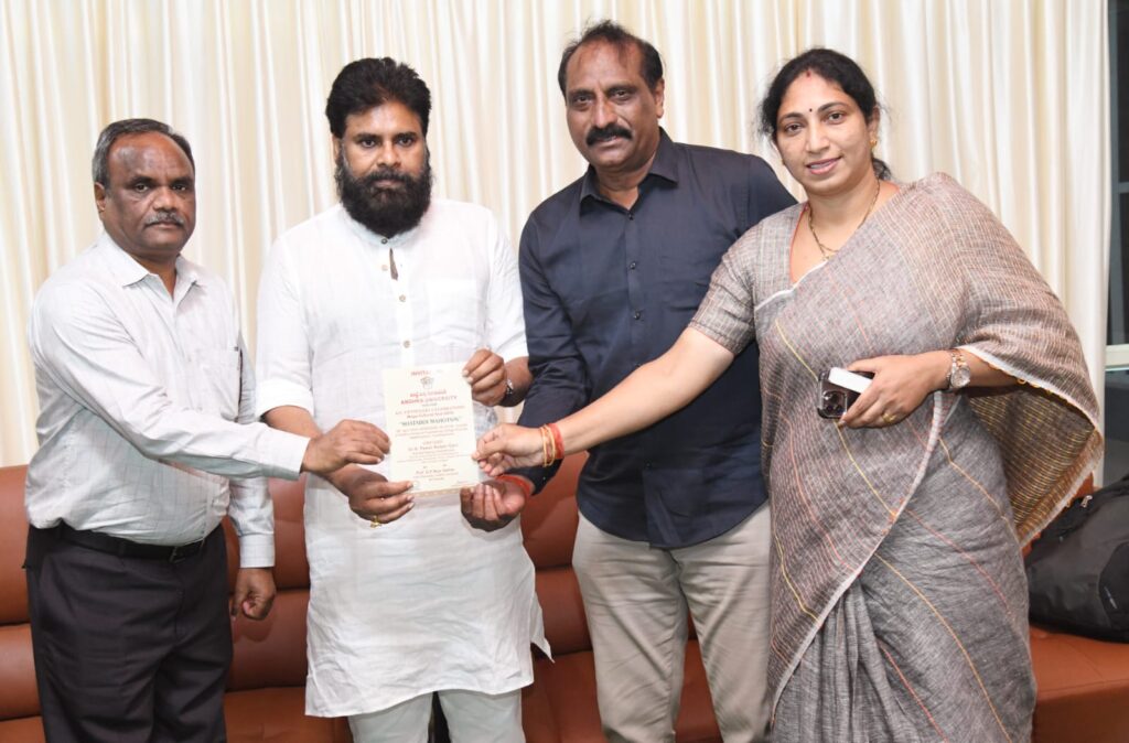 విశాఖ ఎడ్యుకేషన్,ఏప్రియల్ 6 ఫ్లాష్ మెయిల్ న్యూస్ పబ్లికేషన్స్ : ఆంధ్రవిశ్వవిద్యాలయం గౌరవ వైస్ ఛాన్సలర్ ప్రొఫెసర్ జి.పి. రాజశేఖర్ తరపున, విశ్వవిద్యాలయ అధికారుల బృందం ఆంధ్రప్రదేశ్ గౌరవ ఉప ముఖ్యమంత్రి పవన్ కళ్యాణ్ ని కలిసి ఏప్రిల్ 8న జరగనున్న “ఏయూ మెగా కల్చరల్ ఫెస్ట్ 2026 కార్యక్రమానికి ముఖ్య అతిథిగా విచ్చేయవలసిందిగా కోరుతూ వారు వ్యక్తిగతంగా ఆహ్వాన పత్రికను అందజేశారు. ఈ సమావేశంలో భాగంగా, ఆంధ్ర విశ్వవిద్యాలయ శతాబ్ది ఉత్సవాల సందర్భంగా నిర్వహిస్తున్న యువజన కార్యక్రమాల (యూత్ ఈవెంట్స్ ) పోస్టర్ ఆవిష్కరణ గురించి కూడా బృందం గౌరవ ఉప ముఖ్యమంత్రికి వివరించింది. విశ్వవిద్యాలయ ఘనమైన వారసత్వంలో ఈ వేడుక ఒక ముఖ్యమైన మైలురాయి అని, సాంస్కృతిక మరియు విద్యాపరమైన కార్యక్రమాల ద్వారా యువతను క్రియాశీలంగా భాగస్వామ్యం చేయడమే దీని లక్ష్యమని వారు పేర్కొన్నారు. ఏయూ రెక్టార్ ఆచార్య పులిపాటి కింగ్, ఫెస్ట్ చైర్మన్ ఆచార్య ఎన్. విజయ మోహన్, దుర్గాబాయి దేశముఖ్ మహిళా అధ్యయన కేంద్రం సంచాలకులు ఆచార్య పల్లవి ఏయూ క్యాంపస్లో జరగనున్న ఈ శతాబ్ది యువజన వేడుకల్లో పాల్గొనవలసిందిగా గౌరవ ఉప ముఖ్యమంత్రిని వారు సాదరంగా ఆహ్వానించారు. ఈ కార్యక్రమంలో ఆంధ్రప్రదేశ్ రాష్ట్ర సైన్స్ అండ్ టెక్నాలజీ కౌన్సిల్ ఏ పి సి ఒ ఎస్ టీ పర్యావరణ, అటవీ, సైన్స్ & టెక్నాలజీ విభాగం, మెంబర్ సెక్రటరీ, సీఈఓ డాక్టర్ కె. శరత్ కుమార్ పాల్గొన్నారు. శతాబ్ది ఉత్సవాల్లో భాగంగా ఆంధ్ర విశ్వవిద్యాలయం భారీ స్థాయిలో యువజన కార్యక్రమాలను నిర్వహించడాన్ని ఉప ముఖ్యమంత్రి అభినందించారు. వారి ఆహ్వానానికి సానుకూలంగా స్పందించారు.